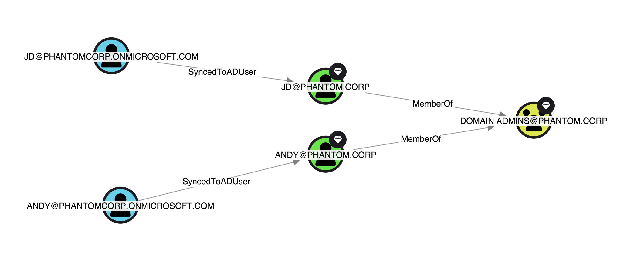 - New Attack Paths: Entra-AD User Syncing - Introduced to the BloodHound graph in April 2022 as a fully supported feature, Entra has remained a dissociated data set from AD. Ever since we’ve wanted to connect the graphs to show risk across those connection points. In this release, we’re adding coverage of user synchronization - showing where Entra and AD users are synced to each other across those environments. This release will enable users to identify and validate paths across those links via pathfinding and cypher. With this work complete, we’re starting a project in BloodHound Enterprise to measure the cross-platform risk from these paths!